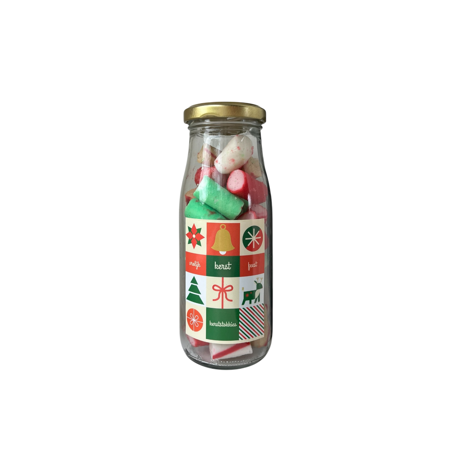 Lekkere zoete stokkies in kerstkleuren. Deze snoeppotten zijn met liefde gemaakt door een social enterprise, waar winst wordt ingezet voor een positieve maatschappelijke impact. Door te kiezen voor deze traktatie steun je eerlijke productie en sociale werkgelegenheid.