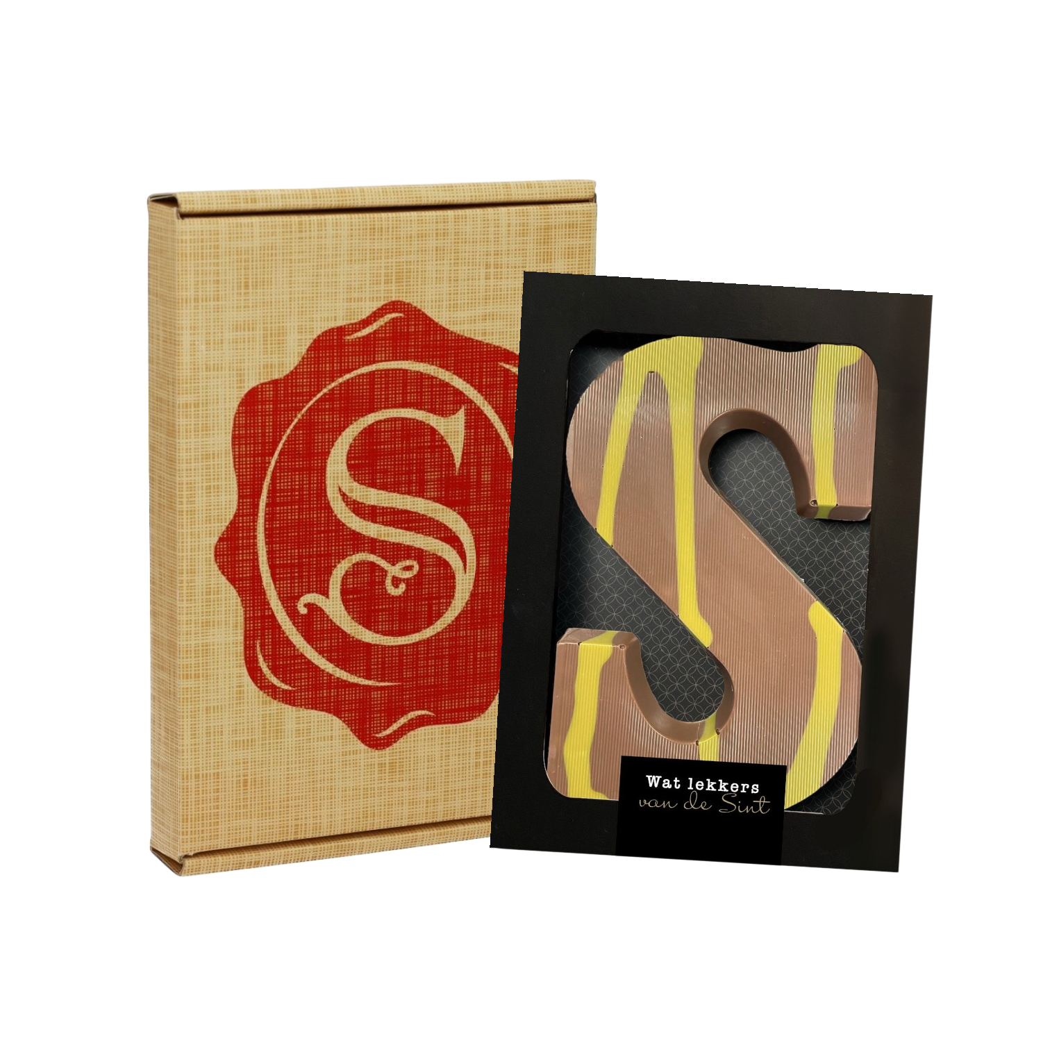 Sinterklaasverzenddoosje met Chocoladeletter Pure Chocolade & Pistachecrème