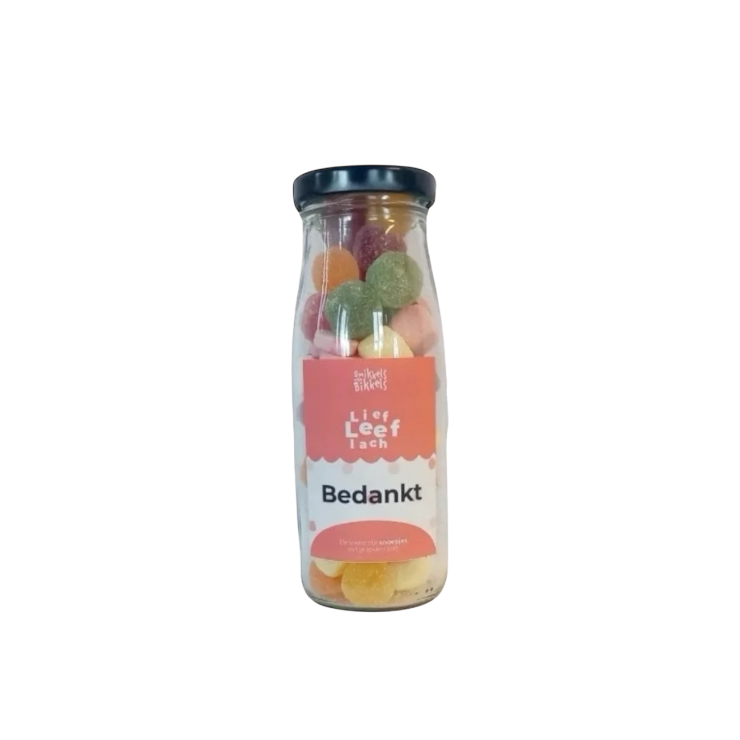 Leuke snoeppotjes! Geleverd in een hip flesje en liefdevol gemaakt door een social enterprise en ingepakt door jongvolwassenen uit een sociale werkplaats. Smakelijk genieten met een warm gebaar!