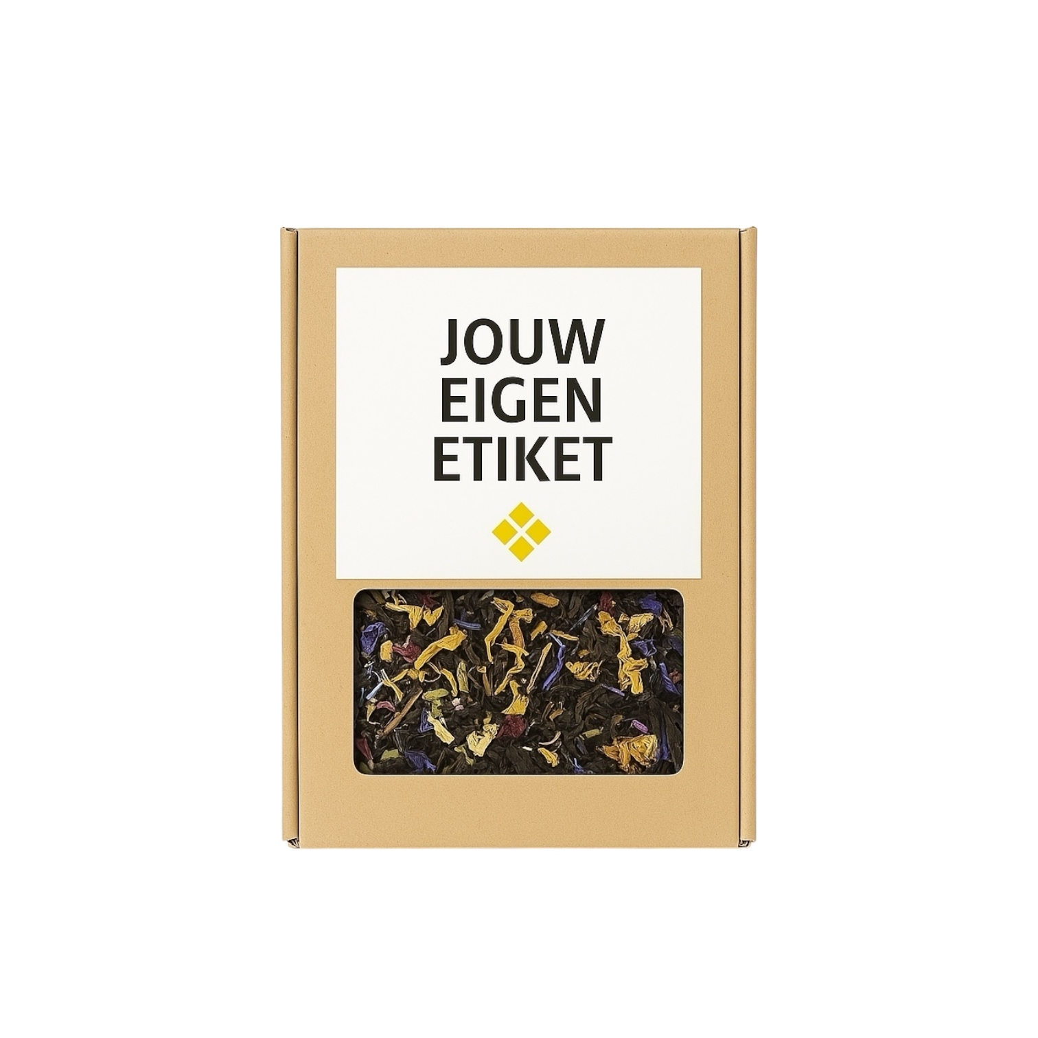 Vanaf 200 stuks kunnen onze theedoosjes volledig gepersonaliseerd worden met jouw eigen stickerontwerp. Deze doosjes worden liefdevol verpakt door mensen met een afstand tot de arbeidsmarkt. Het is een perfect en betekenisvol cadeau, waarbij je een persoonlijke touch toevoegt. Bestel nu en maak van jouw geschenk iets unieks!